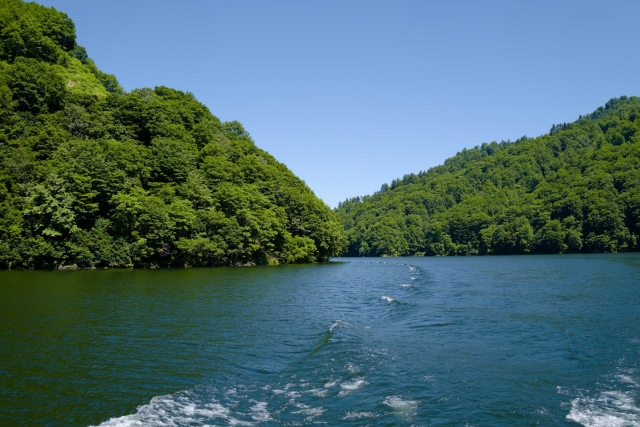 猪苗代湖(いなわしろこ)は福島県中部に位置し、日本で4番目に広い湖です。面積は約103平方キロメートル、透明度が高く湖水は磐梯連峰の伏流水で満たされています。湖の水は水力発電や農業用水などに利用され、周囲には湖水浴のできる浜や遊歩道が整備されて観光名所となっています。